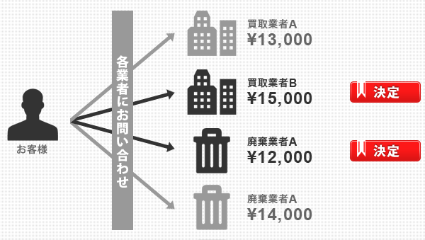 最適な不要オフィス家具の買取 買取業者の金額をそのまま提示し 弊社は引取り完了までの管理手数料を頂戴致します。